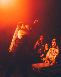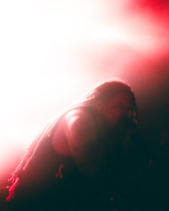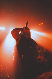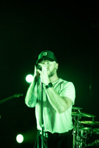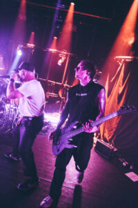 Le groupe balance huit titres sans relâche, portés par une énergie brute et une technique bien affûtée. La fosse réagit instantanément : moshpits, nuage de fumée, lumière rouge sang, ambiance étouffante et délicieusement agressive. Des titres comme “Rain”, “Oblivion”, “Ginsick” ou “Ratking” ont résonné dans la salle, chaque morceau plus violent que le précédent.