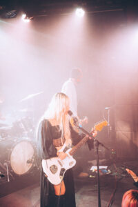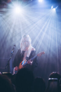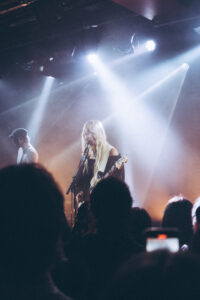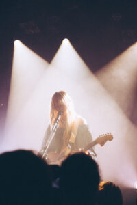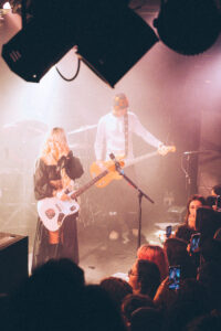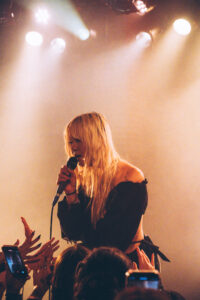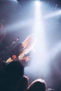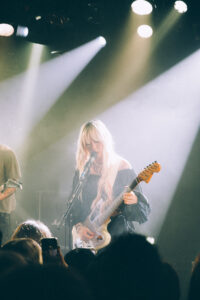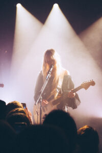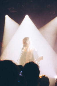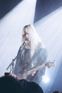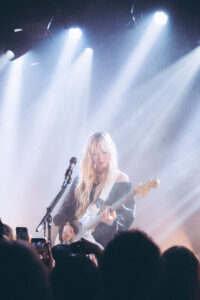 Les morceaux “Mimi”, “Save Me Now” et “Breathe Onto Me” maintiennent cette tension douce : chaque chanson semble flotter, suspendue entre mélancolie et apaisement. Sur “Guide Light” et “If Not Winter”, Wisp s’ouvre davantage, ses gestes se libèrent, sa voix devient plus affirmée. Puis vient “Sword”, dont les guitares tranchent la salle d’un éclat presque post-rock.