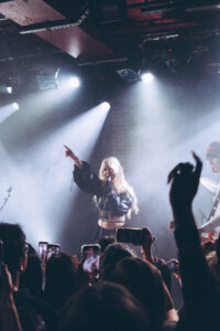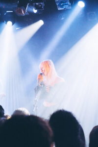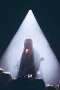 Dans la pénombre de la salle parisienne, un public hétéroclite s’est rassemblé : silhouettes gothiques, visages familiers de la scène alternative et curieux venus découvrir celle dont les morceaux flottent depuis des mois dans nos playlists. On sent dès l’entrée une atmosphère presque religieuse : un mélange de douceur et d’impatience.