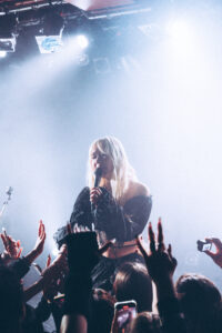 Elle enchaîne avec “Enough for You” et “Mesmerized”, toujours enveloppée dans cette brume lumineuse. Les visuels, minimalistes, accentuent l’aspect spectral de sa musique : un concert comme un rêve lucide.