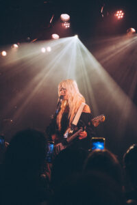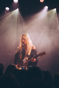 Puis, pour le rappel, Wisp revient seule, guitare en main. Elle entame une reprise inattendue : “Yellow” de Coldplay, réinterprétée à sa manière : ralentie, rêveuse, presque éthérée. Les voix du public se joignent à la sienne dans un murmure collectif. Enfin, elle clôt la soirée avec “Your Face”, un morceau tout en douceur, presque une berceuse. La salle retient son souffle jusqu’à la dernière note.