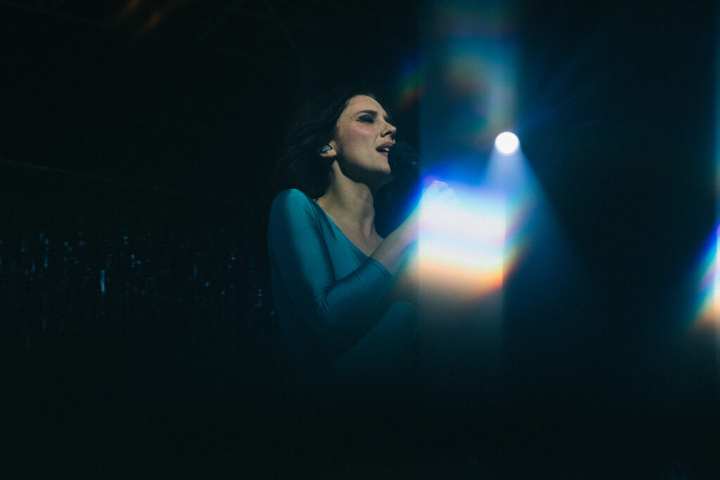 Ellie tourne le dos à la foule lorsque commence Bread butter tea sugar, un spot en forme d’étoile l’éclaire et se projette sur le rideau argenté, son ombre au centre. Le rythme donne envie de taper du pied. Passage a capela lors du pont du morceau, puis l’énergie redémarre , la chanteuse prend des poses lascives face au ventilo et le public pousse des cris !