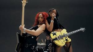 La vraie dinguerie ici, c’est le mixage d’ADN : punk, metal, hip-hop, pop, électronique, non pas empilés, mais entrelacés. On sent la patte « gros calibre » de Costey, mais rien n’écrase la personnalité mastodonte du duo. La basse de Georgia n’est pas un instrument, c’est un personnage : tour à tour limace toxique, robot vénère, trampoline pour mosh pit. La voix d’Amy, elle, passe du chuchotement en velours à la furie opératique sans perdre le sourire carnassier. Et dans les textes, un pas de côté salutaire : on garde l’attitude, on montre les fissures, on parle de santé mentale, de deuils, de rage utile, jamais poseur, toujours incarné.